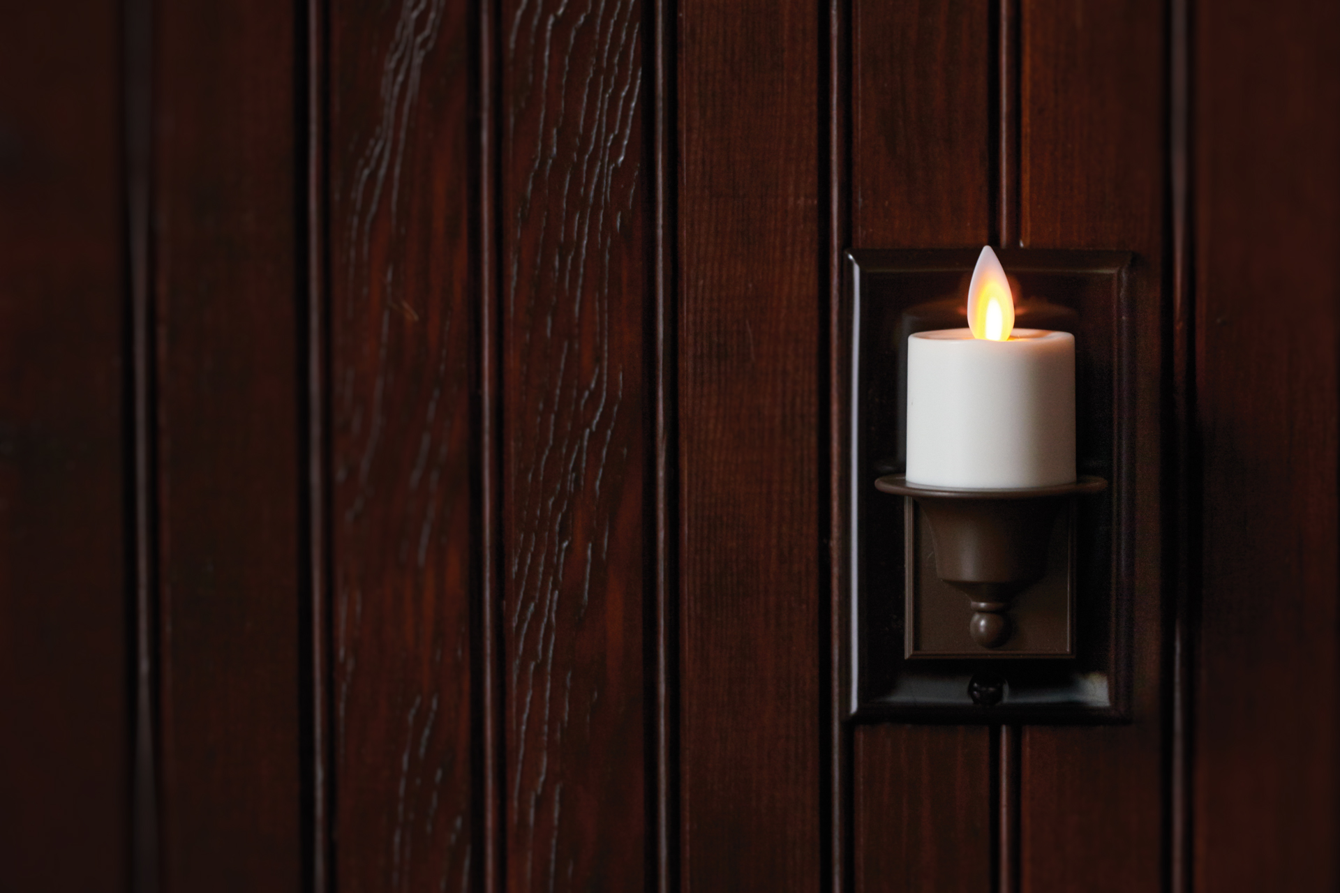 We’ve taken flameless beyond batteries and have created the same realistic flickering effect in electric solutions. Our Moving Flame light bulbs replace current bulbs to transform a room or entire home with the same romantic effect of candlelight, providing the same ambiance that lit dwellings before the invention of electricity. Imagine being at the entrance of a home, walking down a hallway, or stepping into a dining room, bedroom or bathroom with the look of real fire setting the scene. From chandeliers to porch lights, and window sills to nightlights, consumers can now express their passion for old world light with Matchless fire-like light.